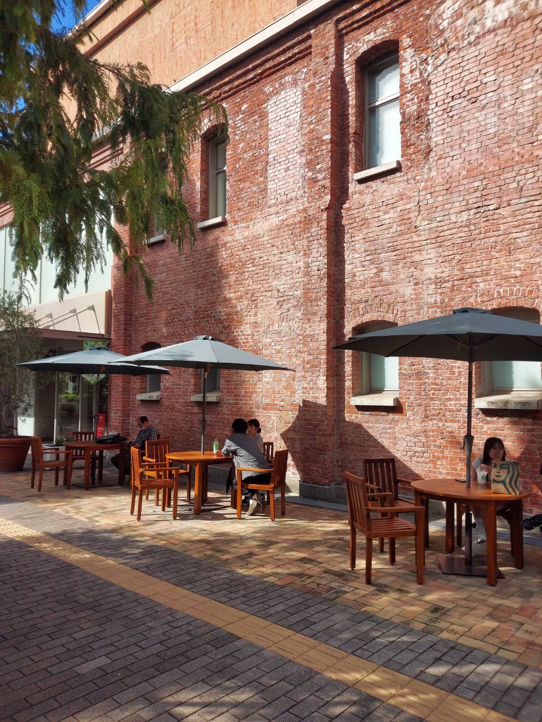 雰囲気の良い場所で、煉瓦造りの建物と木や噴水が相まって、とても良い空間になってます。