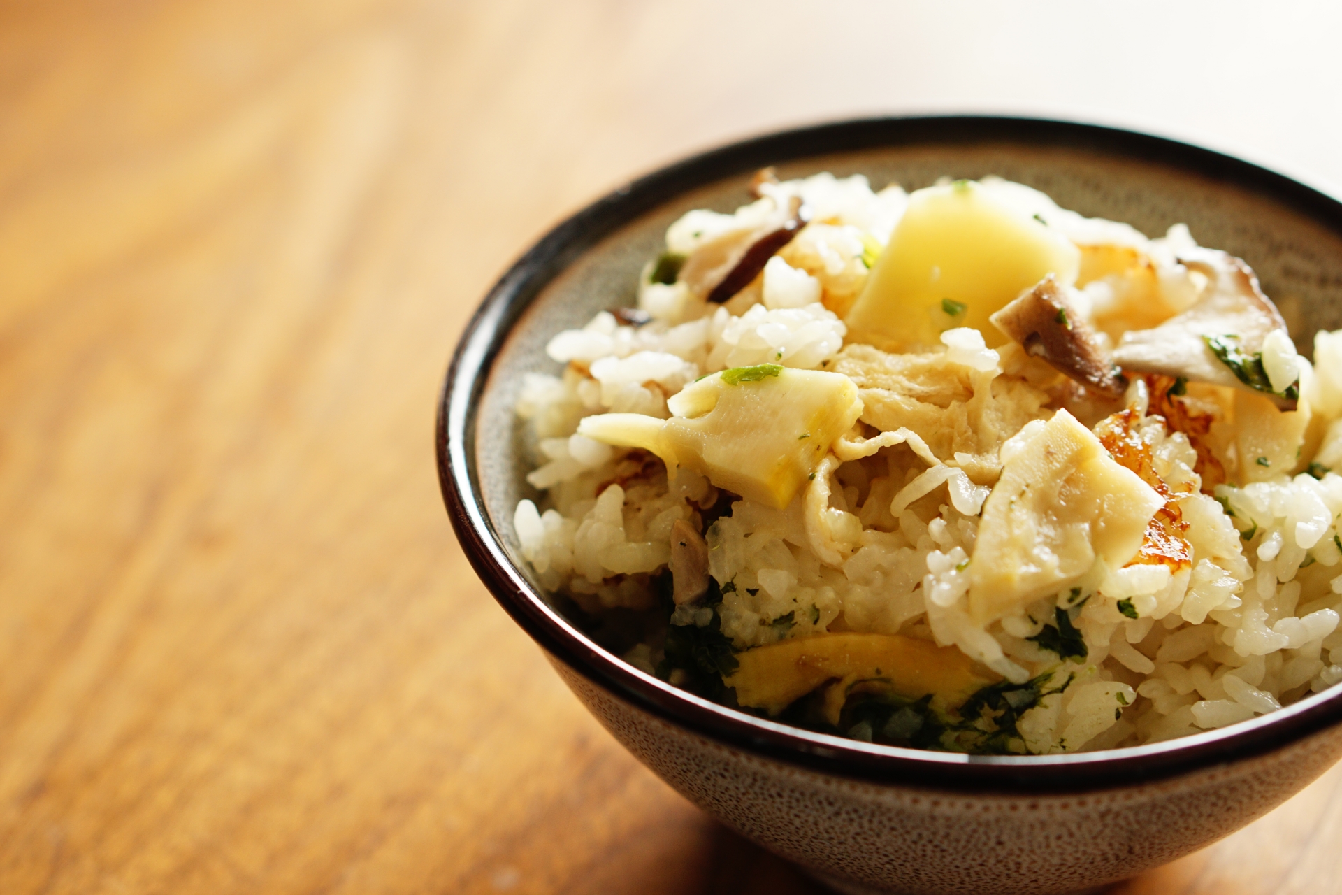 具材にニンジンを加えたりトッピングに木の実を乗せアップデートするとより本格的なたけのこの炊き込みご飯になります。
