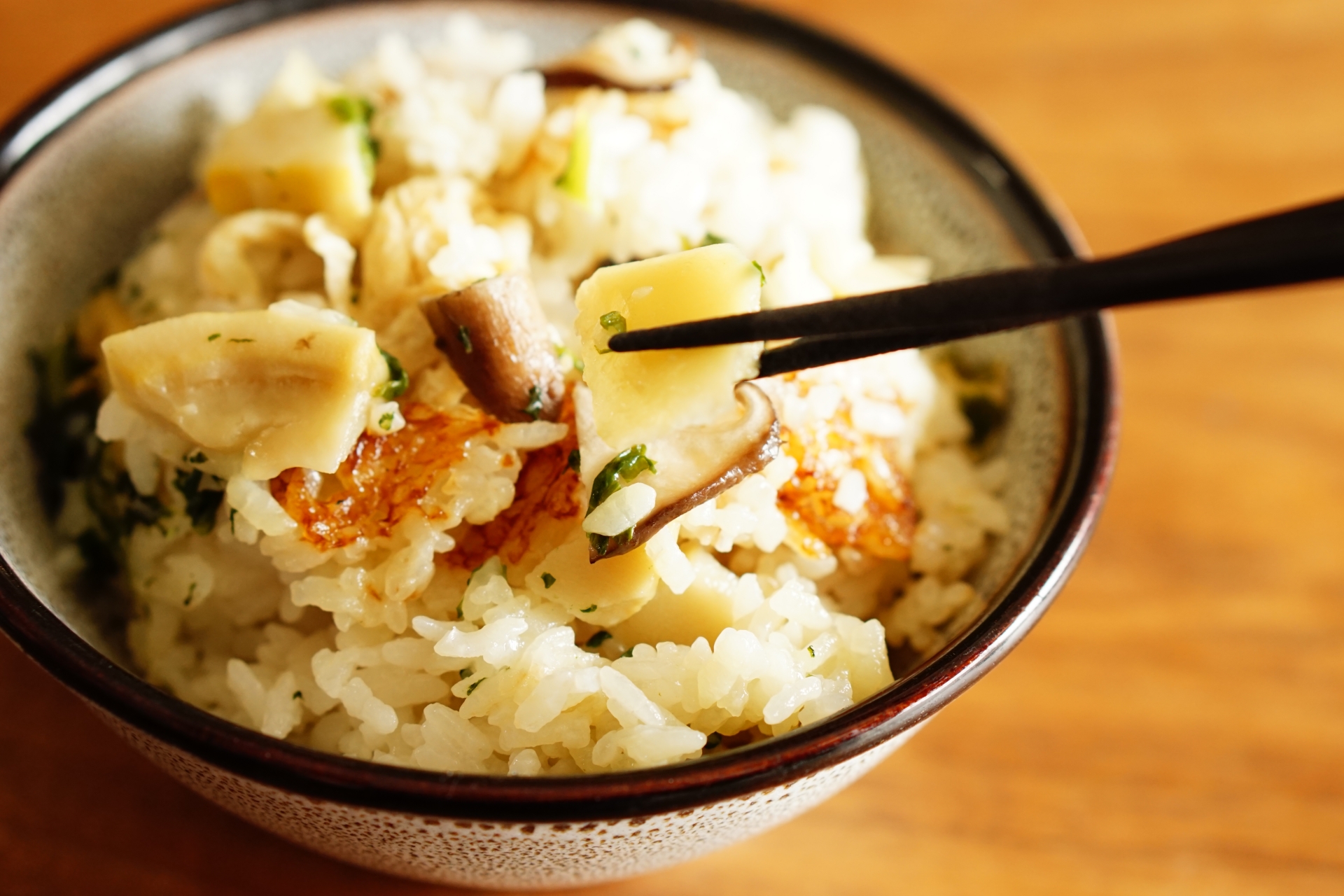 今回の味付けは、たけのこの味や食感を楽しみたいので少し薄味ですがごはんにも具材にも味がしっかり染み込み美味しいです。