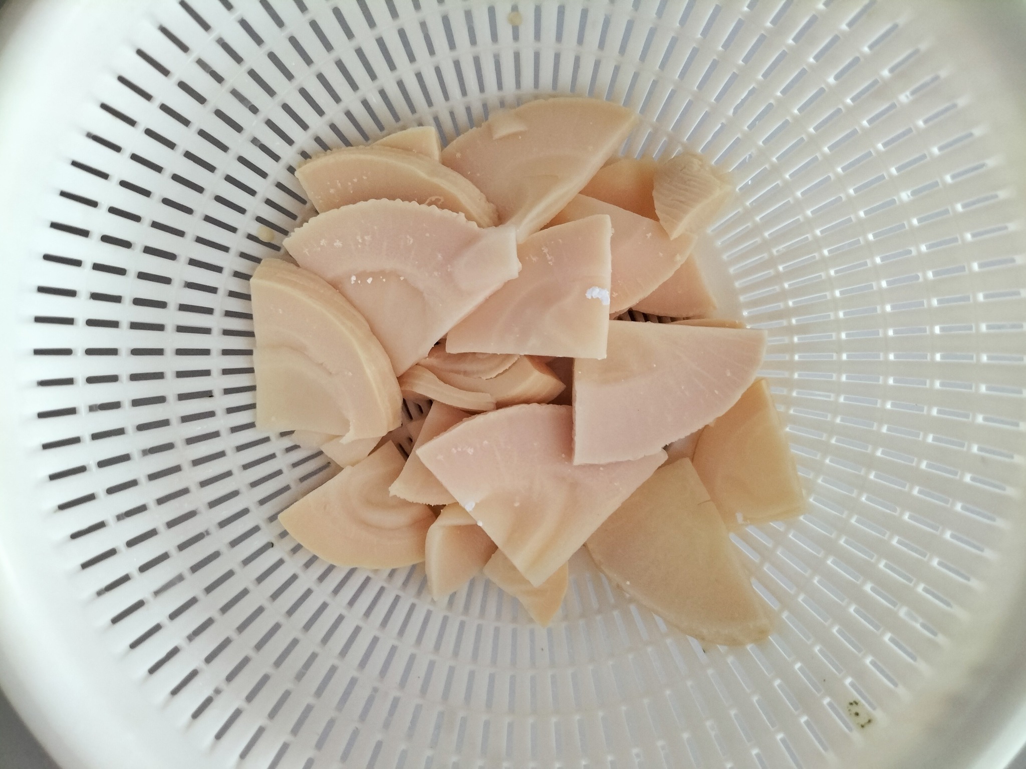 横に薄切りにしたたけのこの水煮