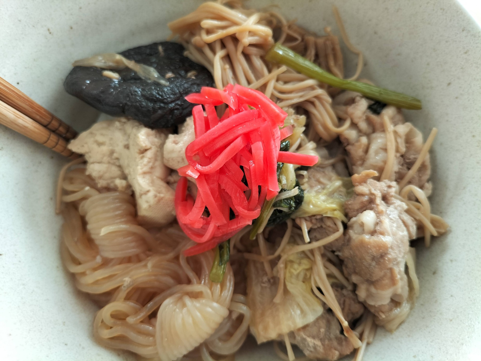 - 仕上げに、紅ショウガをちょこっとトッピング。さっぱりとしたアクセントが加わり、さらに美味しさアップです。