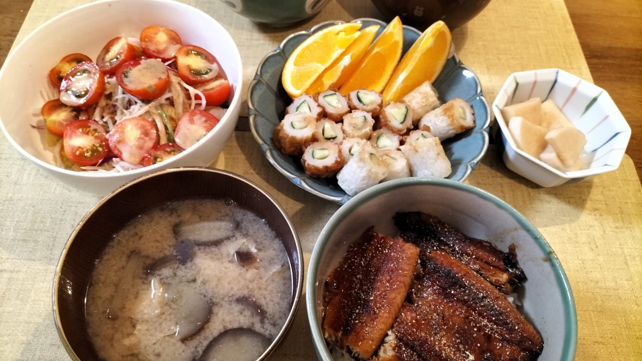 というわけでというわけで今日の50代夫婦の夕食は、うな丼の献立です。
