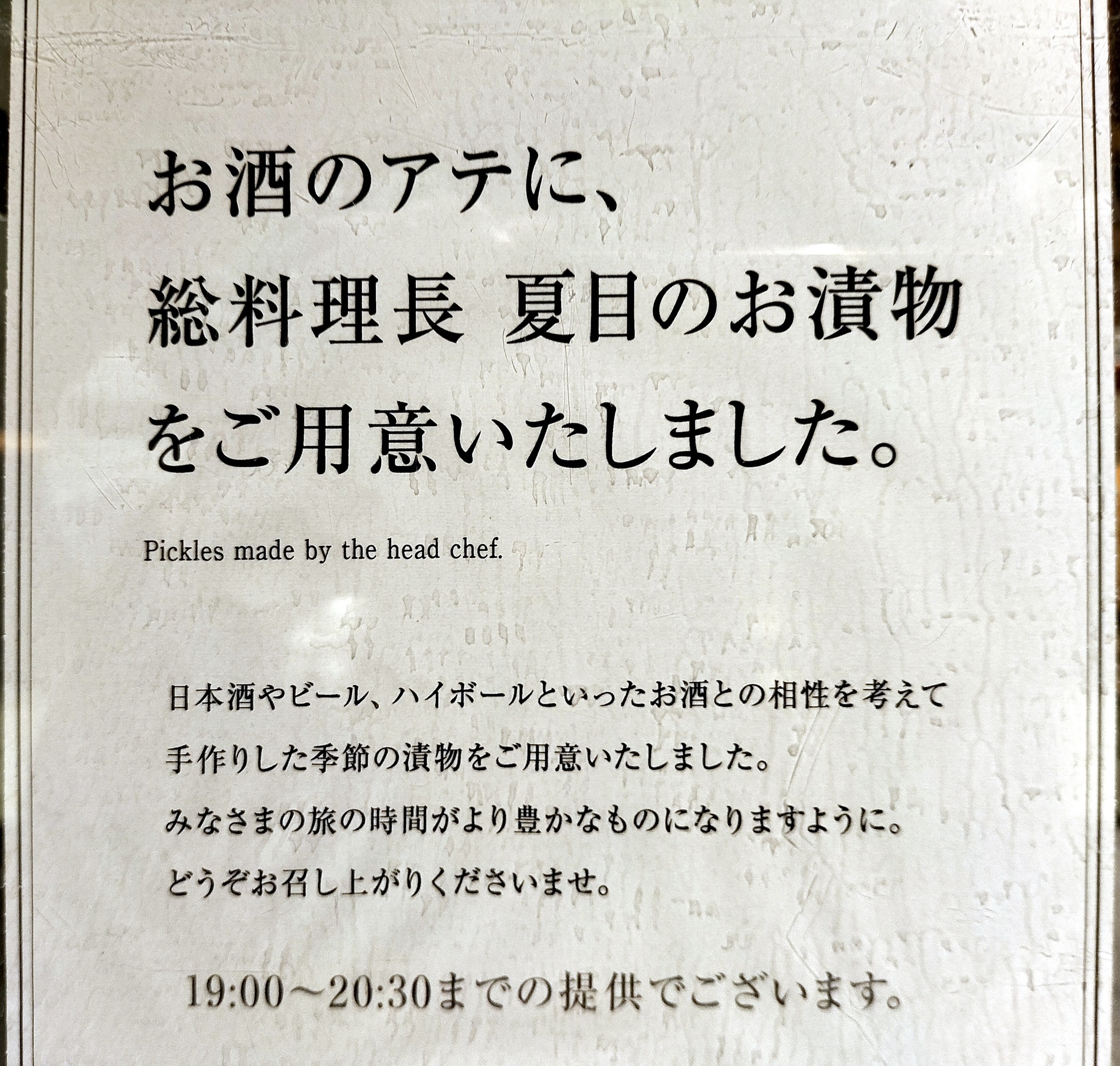 ウエルカムドリンクの案内