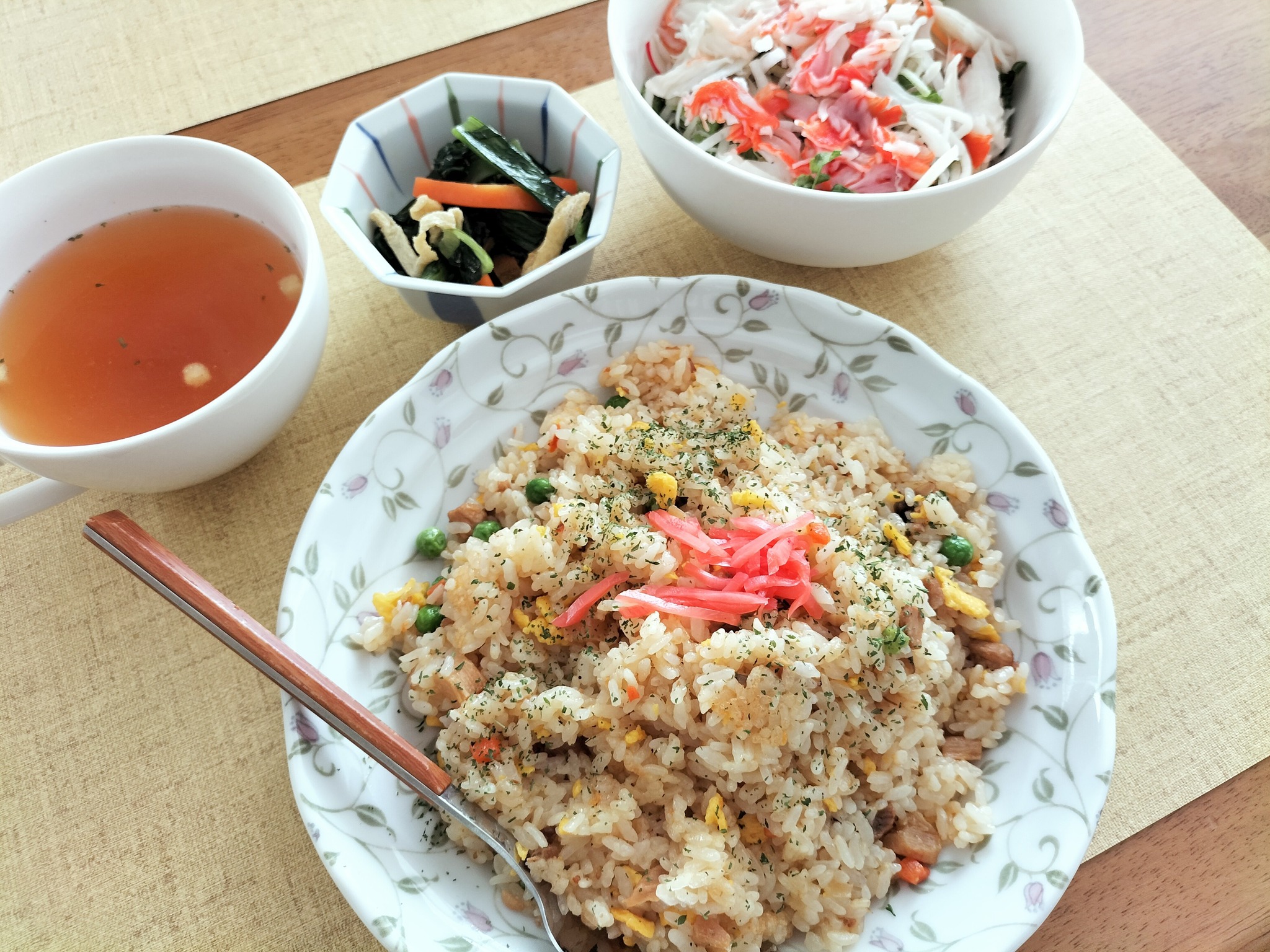 子供も喜びそうな和洋中折衷のチャーハンの献立です。