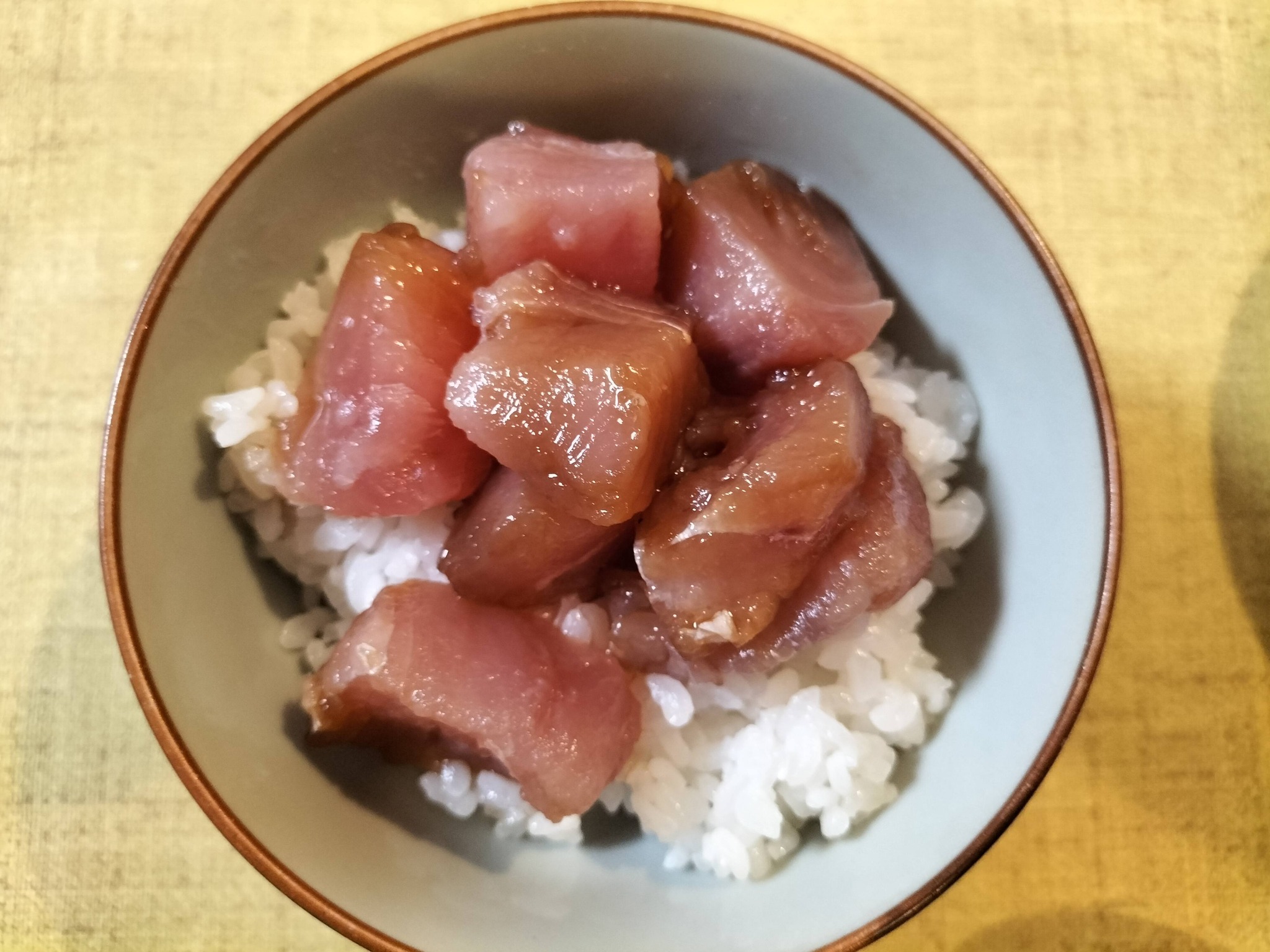 ご飯を器に盛りマグロの漬けをトッピングします。